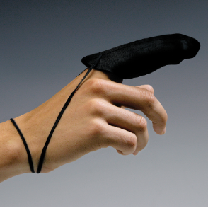 Aus weichem Leder, zum Schutz über den Fingerverbänden mit Bindeband. Größe 5